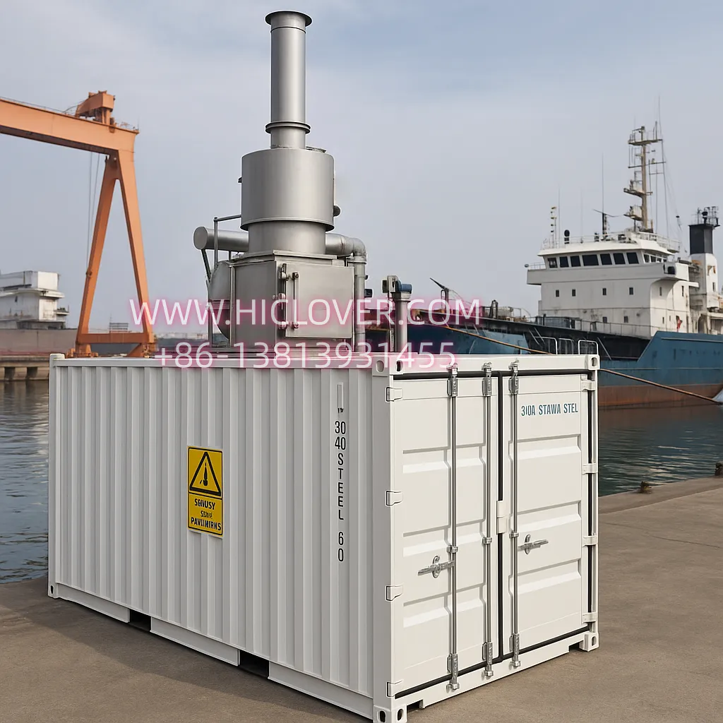 For ports, shipyards, fishing fleets, and offshore facilities, a containerized high-efficiency incinerator is essential to maintaining environmental compliance and operational hygiene. The HICLOVER marine incineration system, with its corrosion-resistant 304 stainless-steel body and flexible installation, provides a durable and effective solution for modern maritime waste disposal.